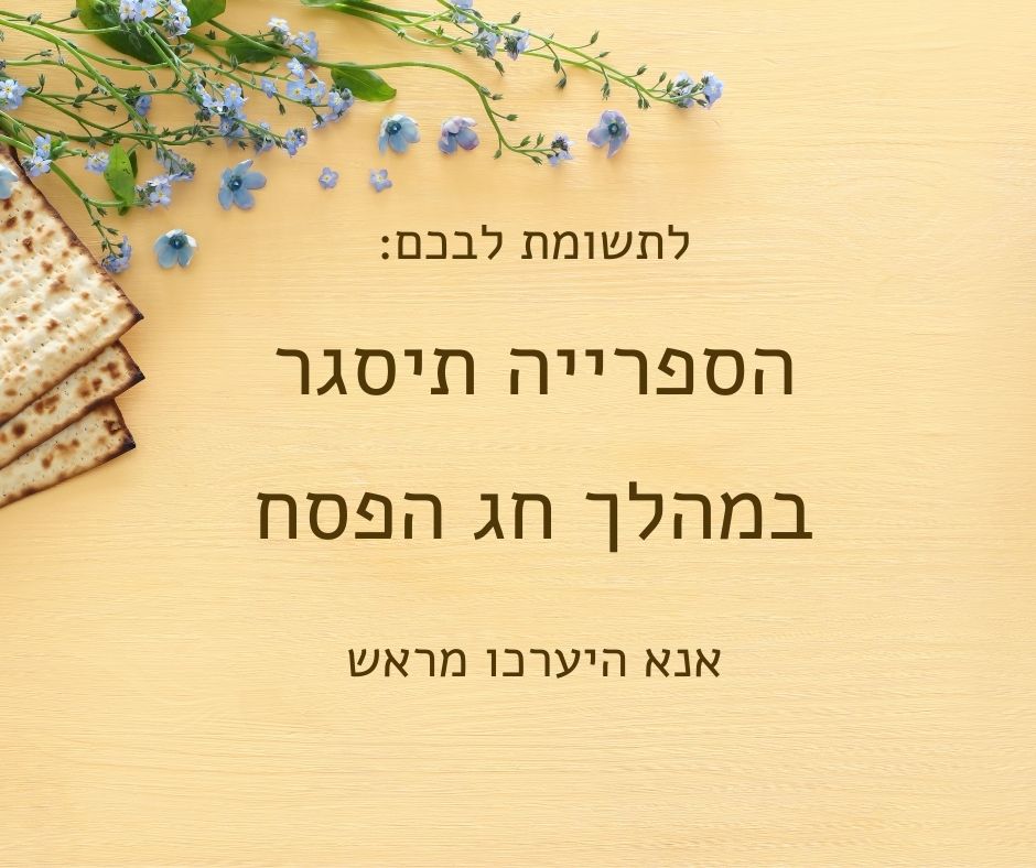הספרייה תהיה סגורה במהלך חג הפסח, החל מיום רביעי, 1 באפריל (ערב החג), ועד יום רביעי, 8 באפריל 2026 (חג שני).